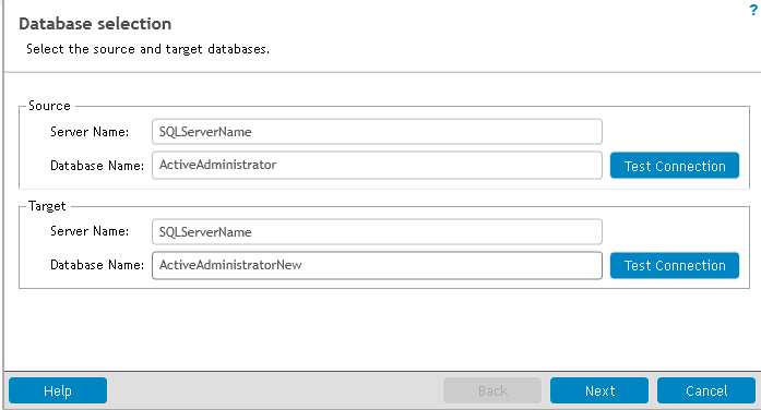 NOTE: The source and target databases must exist within the same version of Active Administrator.