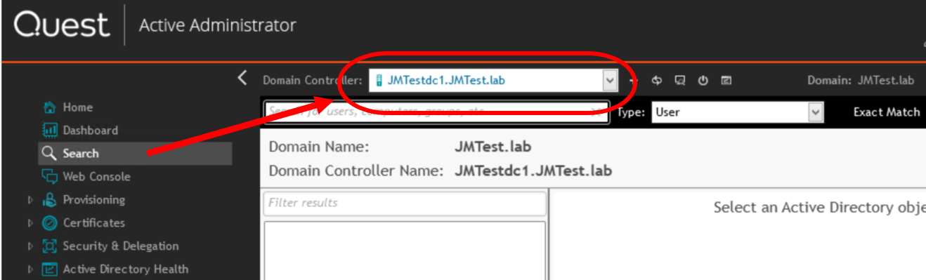 Active Administrator provides a Search module to find Active Directory objects quickly and perform basic tasks.