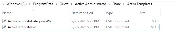 C:\Active Administrator\ActiveTemplates , or C:\ProgramData\Quest\Active Administrator\Share\ActiveTemplates.