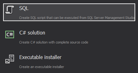 After choosing the appropriate output action, the combining process is complete, and all the necessary SQL scripts are combined into a single script.