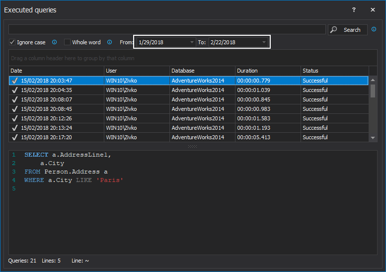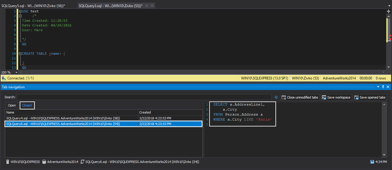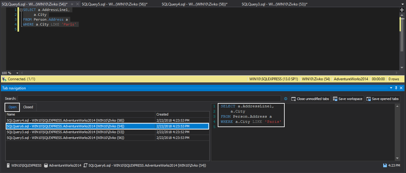 How to track queries in SQL Server Management Studio and Visual Studio (4214794)