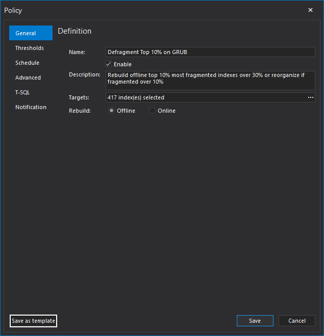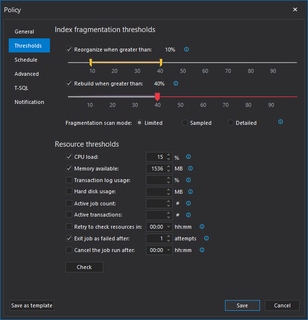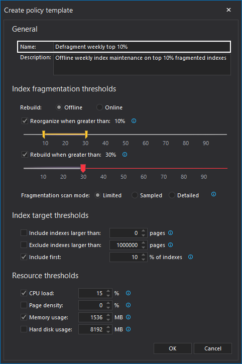 How to customize policies for automatically defragmenting SQL Server indexes (4299166)
