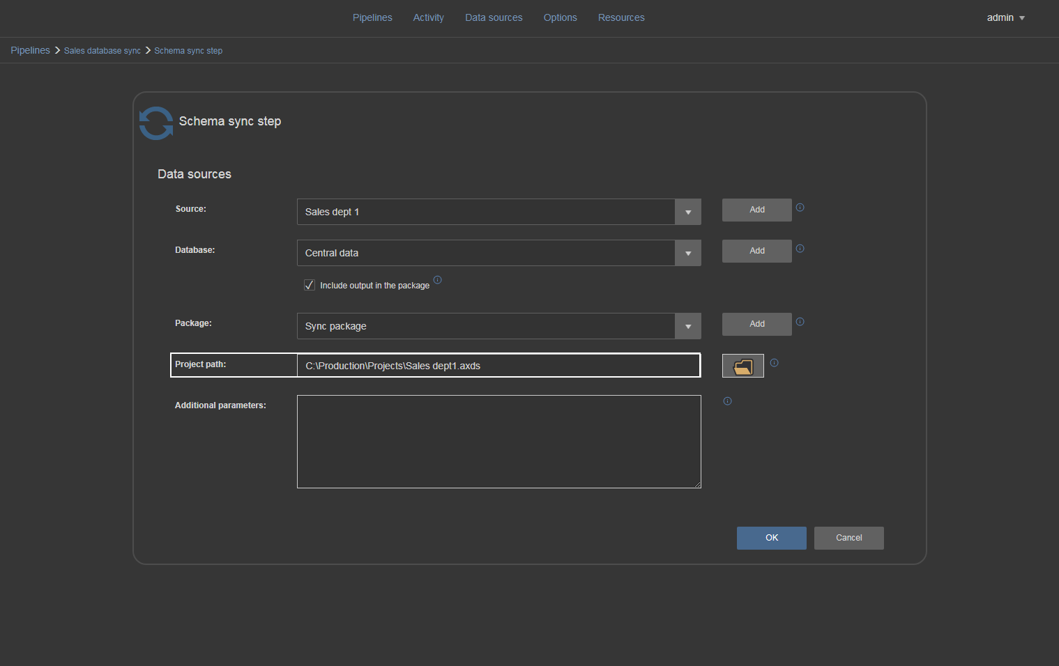 Following option to include output in package requires some additional explanation. This option will create a NuGet package file to store outputs of the Schema sync step.
