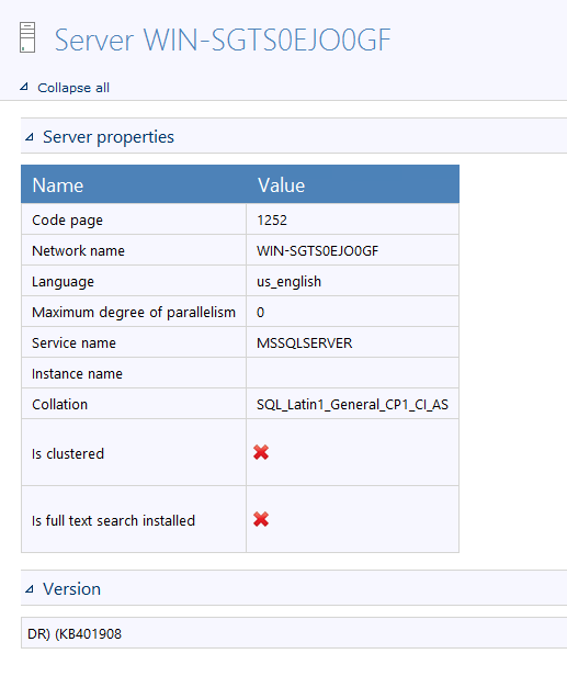 This behavior is identified as a product defect that will be resolved in future releases. However, there is a work around, when documenting in other file formats (.pdf, .doc, etc) the SQL Instance version is displayed correctly.