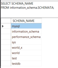 FROM information_schema.SCHEMATA;This code will show all databases for a MySQL instance: