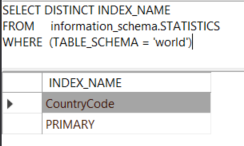 Below is the query which will retrieve all MySQL indexes from the database. Primary key indexes will have the same name unless an explicit name is given when created: