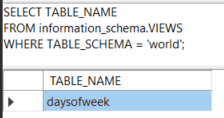 FROM information_schema.VIEWSBut, to narrow down the search scope to just one database, add one extra line of code:
