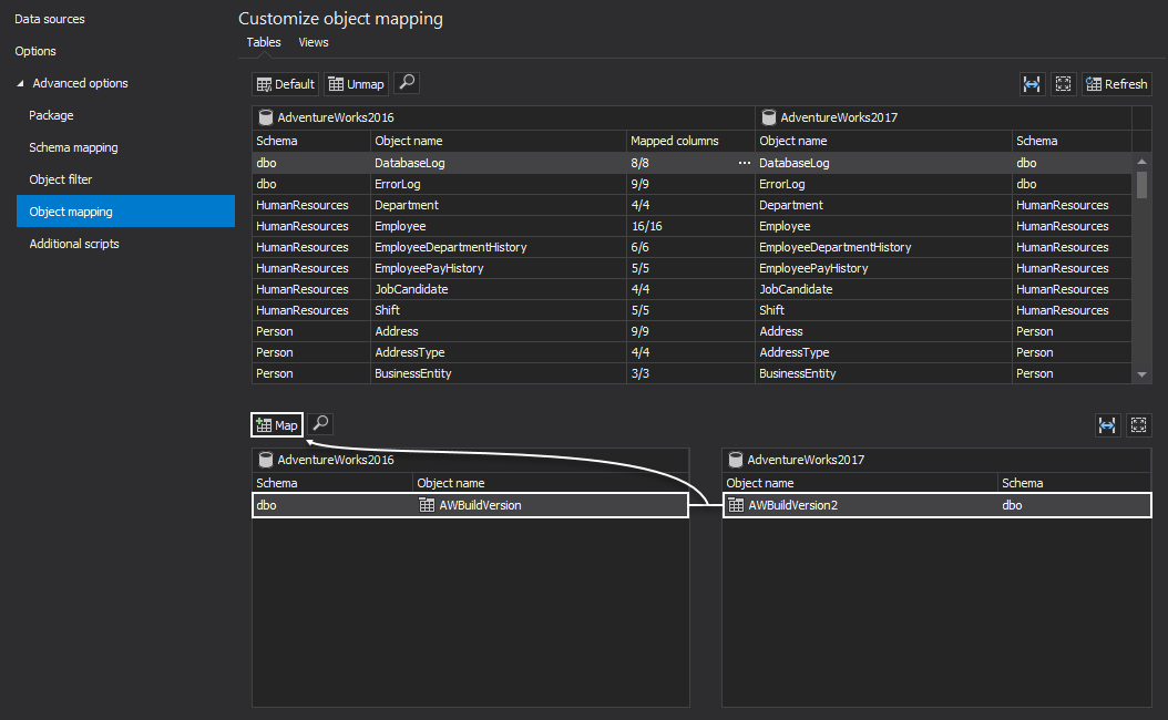 How to perform custom object mapping in ApexSQL Data Diff (4299097)