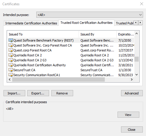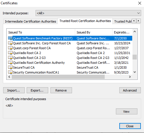 To access the REST API with a Certificate. See how to Import Benchmark Factory Self Signed Certificate