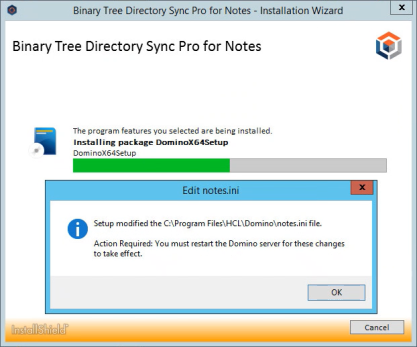 Click Install to begin the installation of Directory Sync Pro on the Domino server.