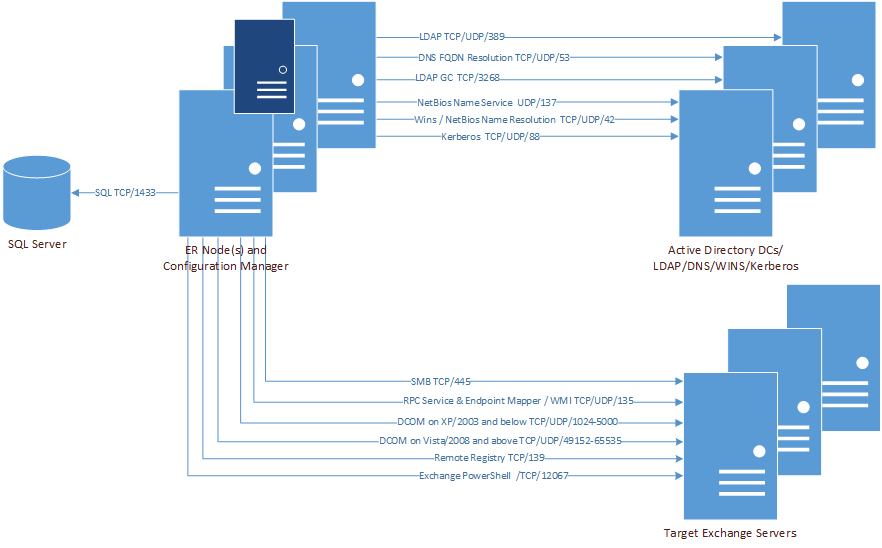 The following figures outline the ports used by the Enterprise Reporter discoveries.