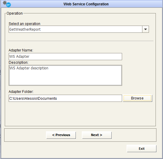 After selecting the desired operation it is required to enter a name and a description for the adapter in the appropriate fields;the user must browse the file system for the adapter folder (used to save intermediate and result file for adapter execution).