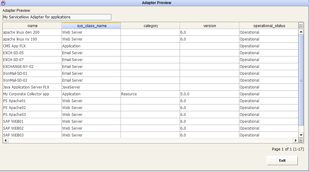 In case of ServiceNow “push data” operation, with the double-click on the lens icon, a table appears, with the available import set tables:
