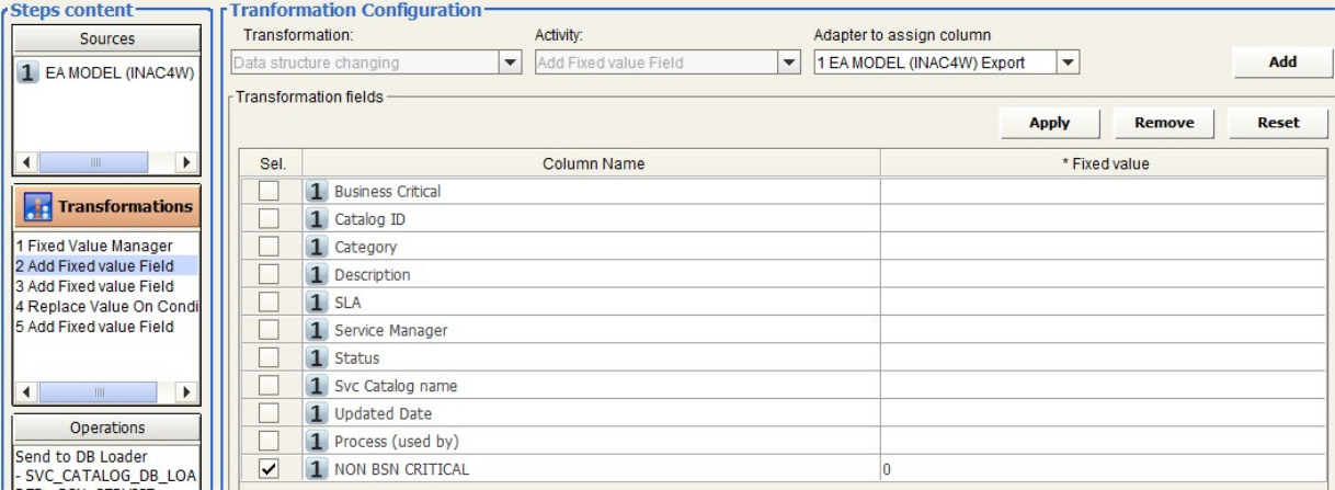 TRANSFORMATION 2/3 – Add Fixed Value fields for target Business Critical fields