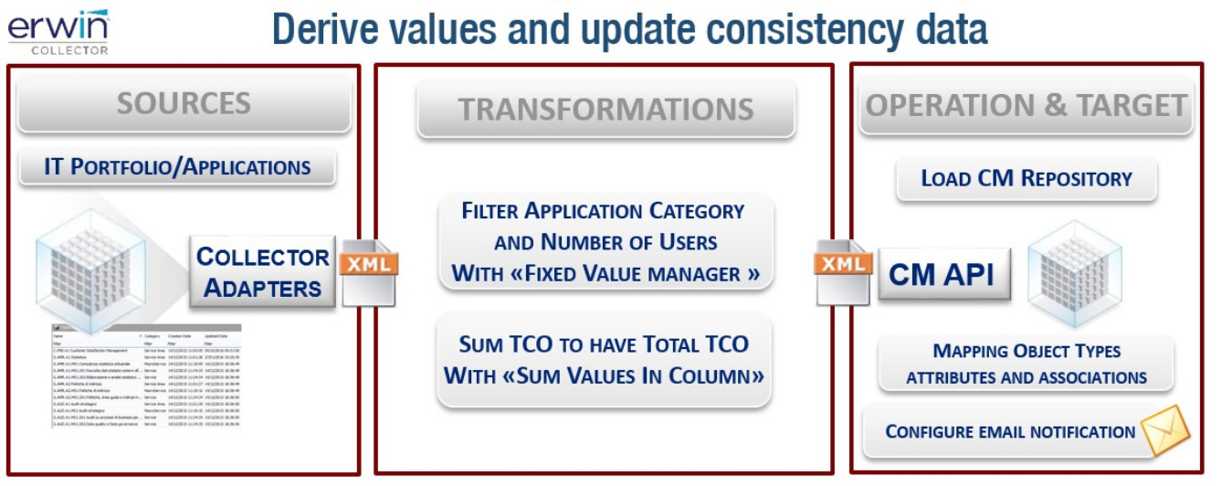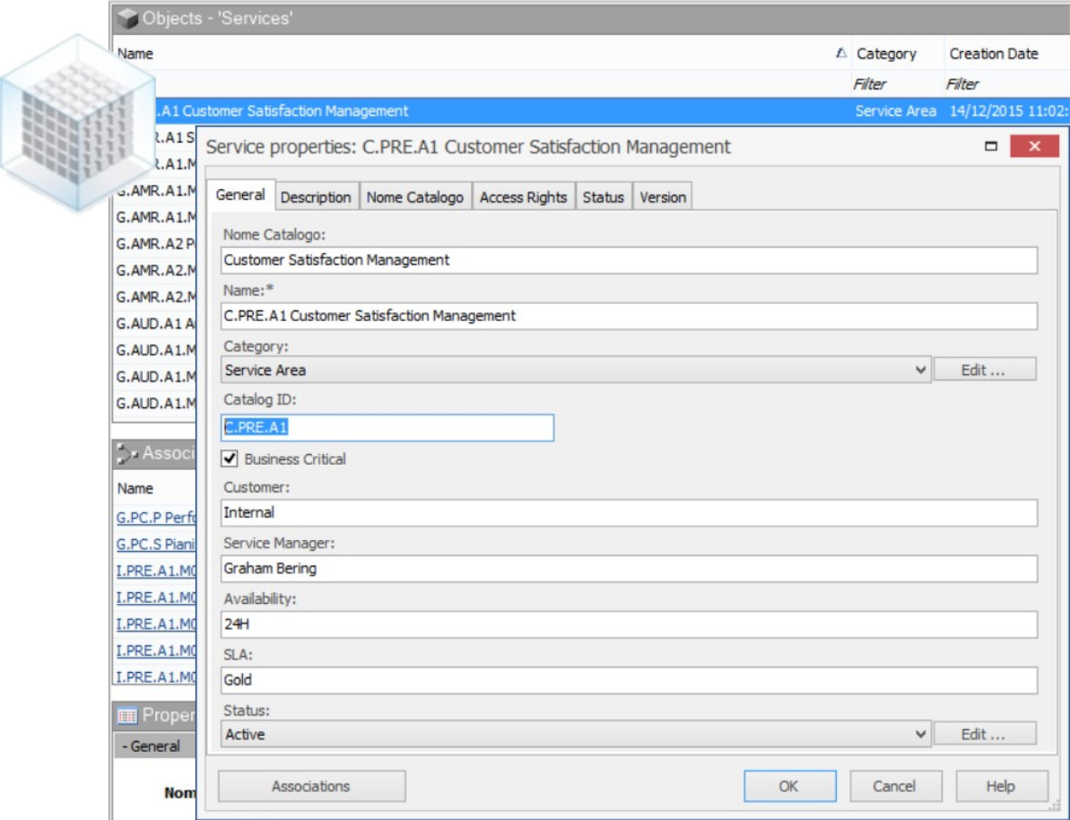 a Service Catalogue manages enterprise services data, stored in a MS SQL database table. The service table identifies the item with a “COD_APPLICATION” field, which is differentiated by the Erwin ID of the model for the same item: