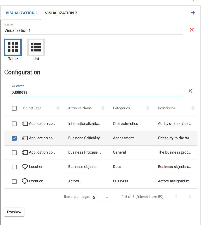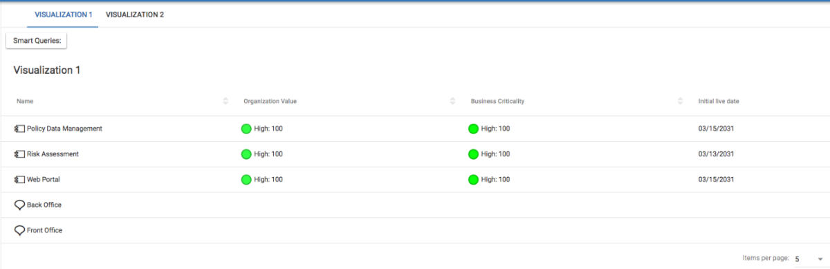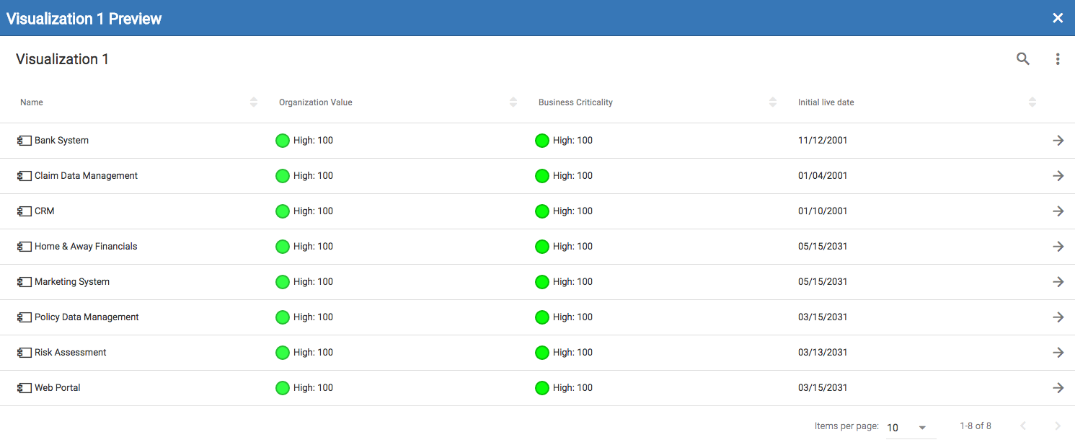 We have now created a view that will pull out all of the Application components that have "High: 100" Organization Value, and "High: 100" Business Criticality. We now need to decide how we would like to visualize this data and what information we would like to pull out and display to users.
