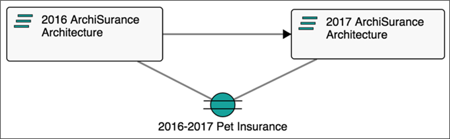 In the example above, we can see that the plateau ‘2017 ArchiSurance Architecture’ is triggered by ‘2016 ArchiSurance Architecture’.  The Gap between these two plateaus is 2016-2017 Pet Insurance.