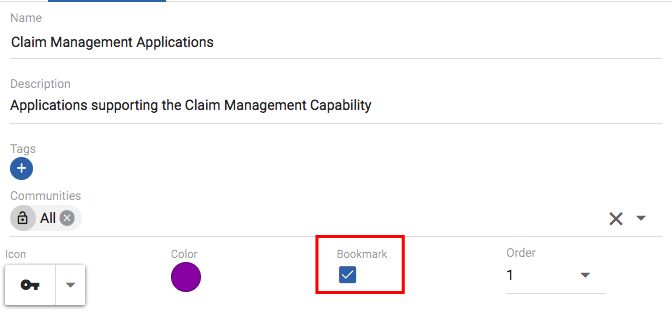 Bookmark: Check the checkbox if you would like the menu item to appear for users that have the correct permissions