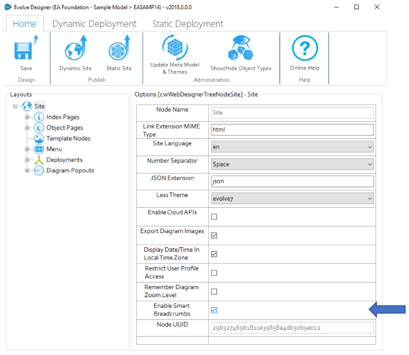 3. See the option to Enable Smart Breadcrumbs in the options in the right hand pane.