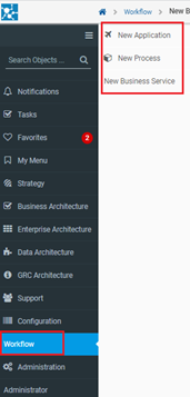 1.A new Separate module for Workflow execution – new module, workflow is added to the Erwin Evolve site, where you can create new applications, process, and business services..