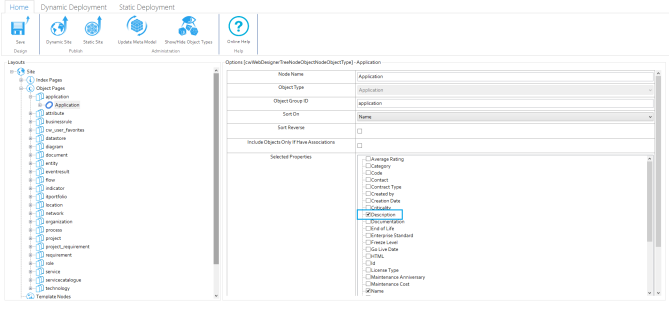 5. Open Evolve Designer and select the check box of the modified Object Property type: