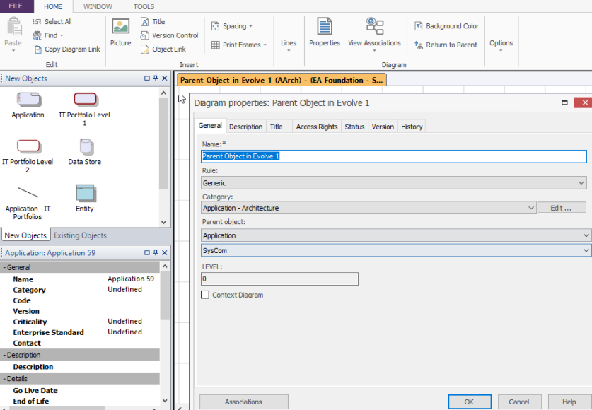 To set the Parent object and Parent object name in erwin Evolve Web: