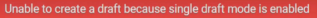 Clicking displays a notification, “Cannot create duplicate draft as one draft mode is enabled”.