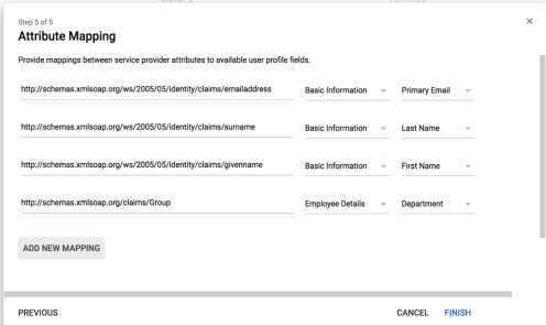 1. For each model you publish under the deployment of the model you must specify the Department names in the “AD Group” Fields this must Match the G Suite Department Names you have set up along with the Values you specified in the attribute statement.