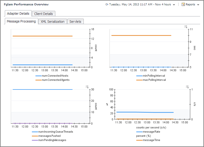 The Adapter Details tab allows you to investigate the performance of the Management Server adapters that communicate with the connected hosts. Use it to see the overall processing rates and to estimate your system’s load. Higher processing rates may lead to decreased performance, requiring further investigation.