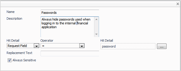 To define security policies for sensitive hit details, navigate to APM > Configure > Traffic Analysis, and expand Sensitive Hit Details.