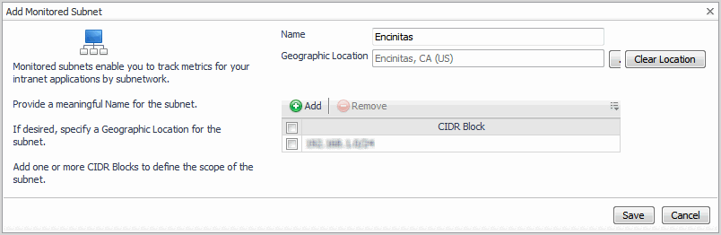 To define and manage monitored subnets, navigate to APM > Configure > Traffic Capture > Monitored Subnets.