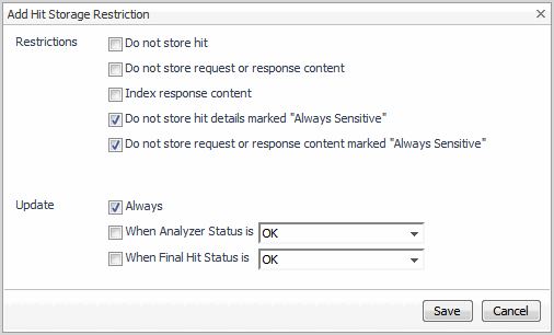 Conditional when sequence analyzer status is—Data is stored only when the status of the sequence analyzer matches the status you select in the list.