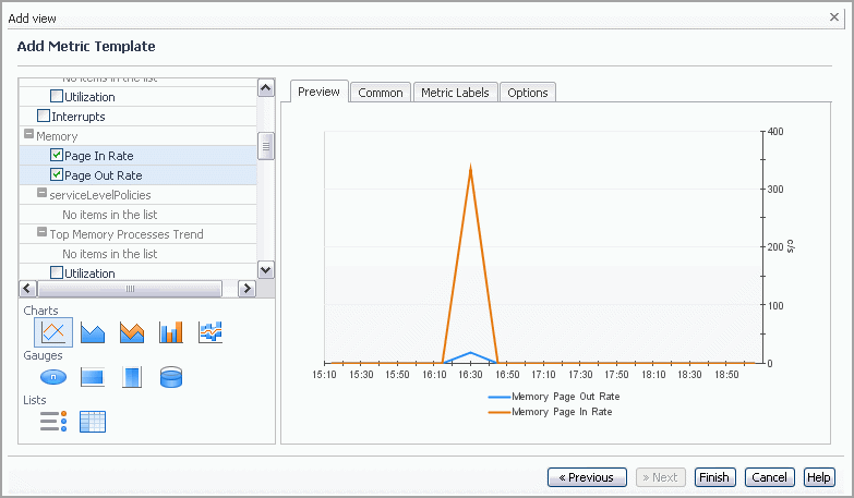 Options tab: controls how metrics are displayed in charts. For more information, see Options tab. |