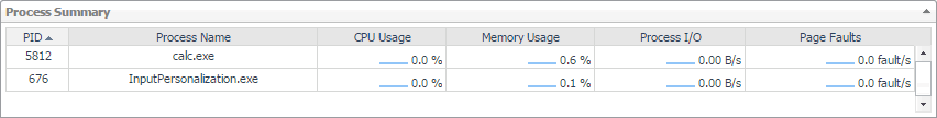 For each identified process, the Page Faults chart displays the number of page faults encountered each second, during the selected time period.
