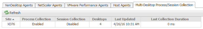Multi-Desktop Process/Session Collection tab: This tab lists XenDesktop sites.