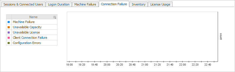 The counts of delivery groups, desktops, and applications over the selected time period. | |