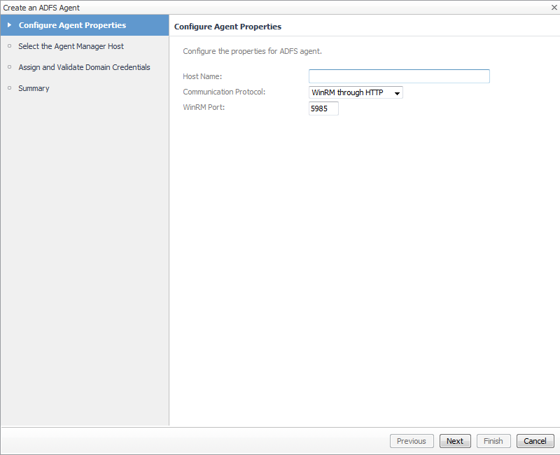 On the Configure Agent Properties page, configure the properties for the ADFS agents.