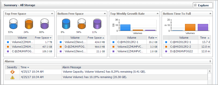This view appears in the display area when you click Explore in the Summary - All Storage view.