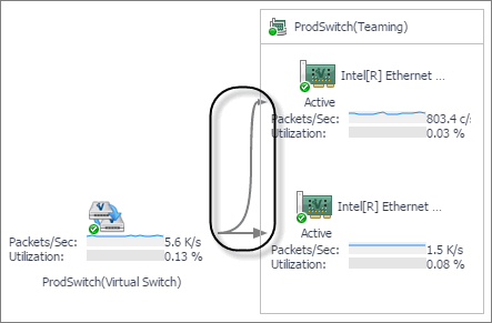 Virtual Machines. The number of virtual machines that are associated with the selected virtual switch, followed by the related alarm counts. | |