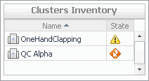 Clusters. Displays the Clusters dwell, showing the names and states of all clusters that are associated with the selected virtual switch. |