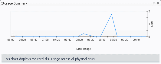 Storage Summary, Disk Usage. The rate at which the server reads from or writes data to disk during the selected time period.