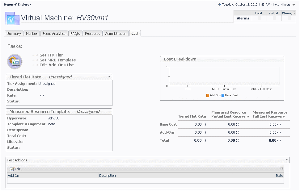 Hyper-V Explorer Cost tab