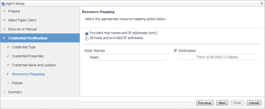 On the Resource Mapping page, indicate which hosts you want to associate with this credential. Click Next. |