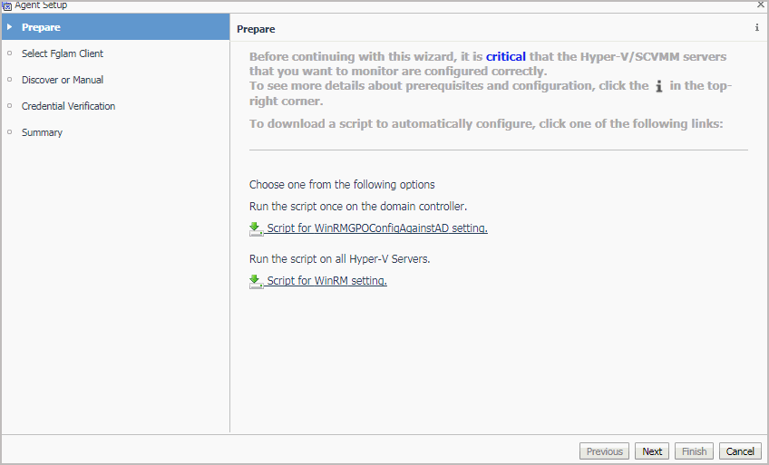 Discovering Hyper-V Servers only. On the Enter Domain Credentials page that appears, specify the information needed to search for the running Hyper-V Servers. |