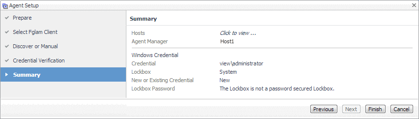 On the Summary page that appears, review the information provided about the host and the monitoring agent. |