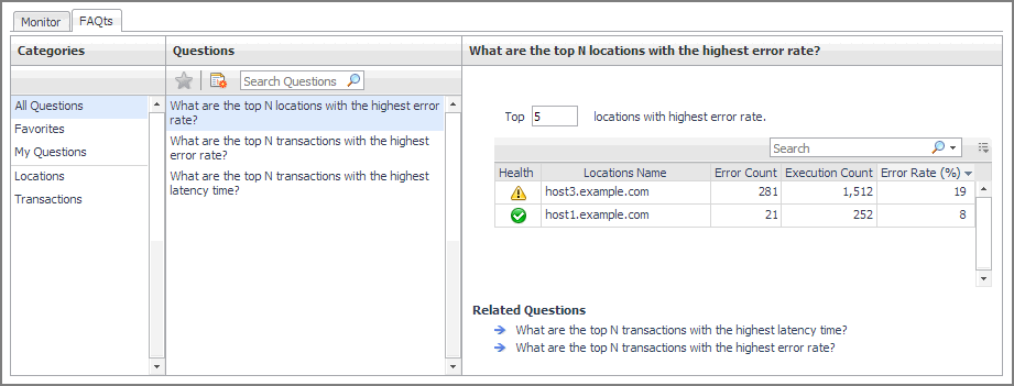 This view lists the questions, for the category selected in the Categories, that can be answered for you by Foglight.