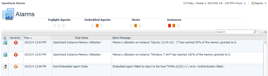 On the navigation panel, under Dashboards, choose OpenStack > OpenStack Alarms.