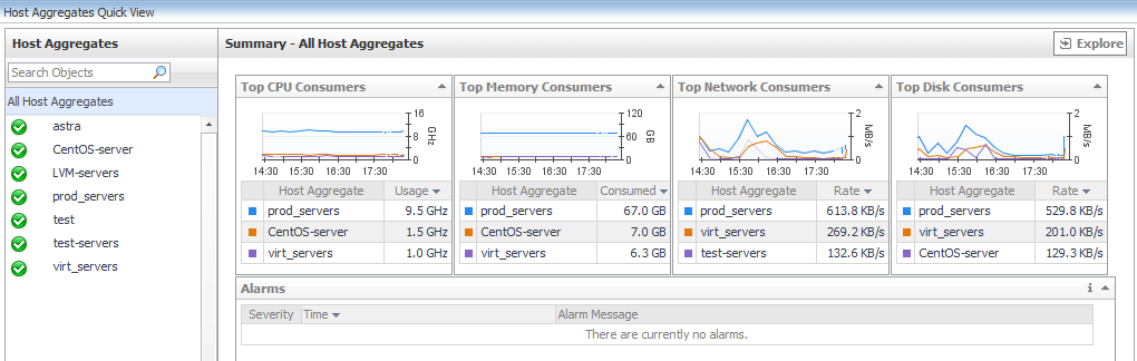 Click the Explore link in the upper right of the Quick View to view detailed information about the selected Host Aggregate.