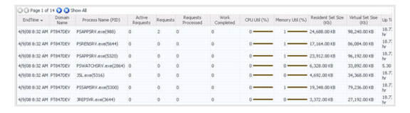 Go to PS_AppServer_Process_Details Table View . This displays data for all instances of the selected process. |