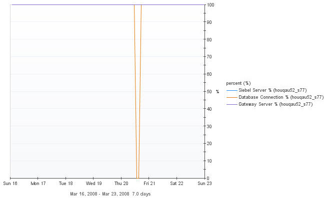 Drill down on Siebel Server % bar. For more information, see Sieb_Comp_Group_Availability graph view. This displays the availability of the Siebel component groups for the Siebel server during the same time range.